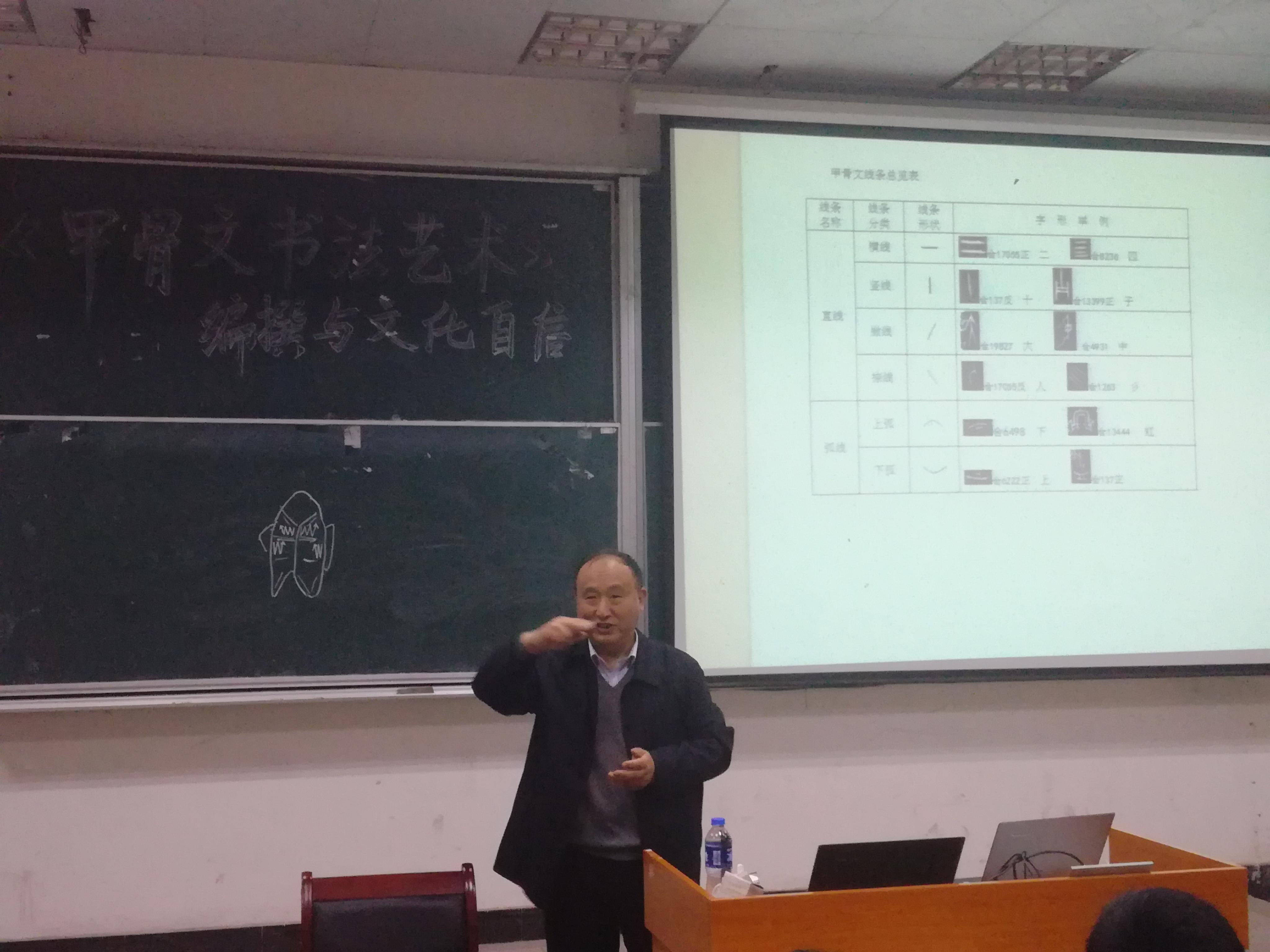 4月11日上午,应我院邀请,国家新闻出版广电总局《中国出版年鉴》社长兼主编郝文勉博士、教授在5教104教室进行了题为“《甲骨文书法艺术》编撰与文化自信”的学术讲座,我院院长刘晓鑫、副院长邓声国以及我院部分师生参加了讲座。