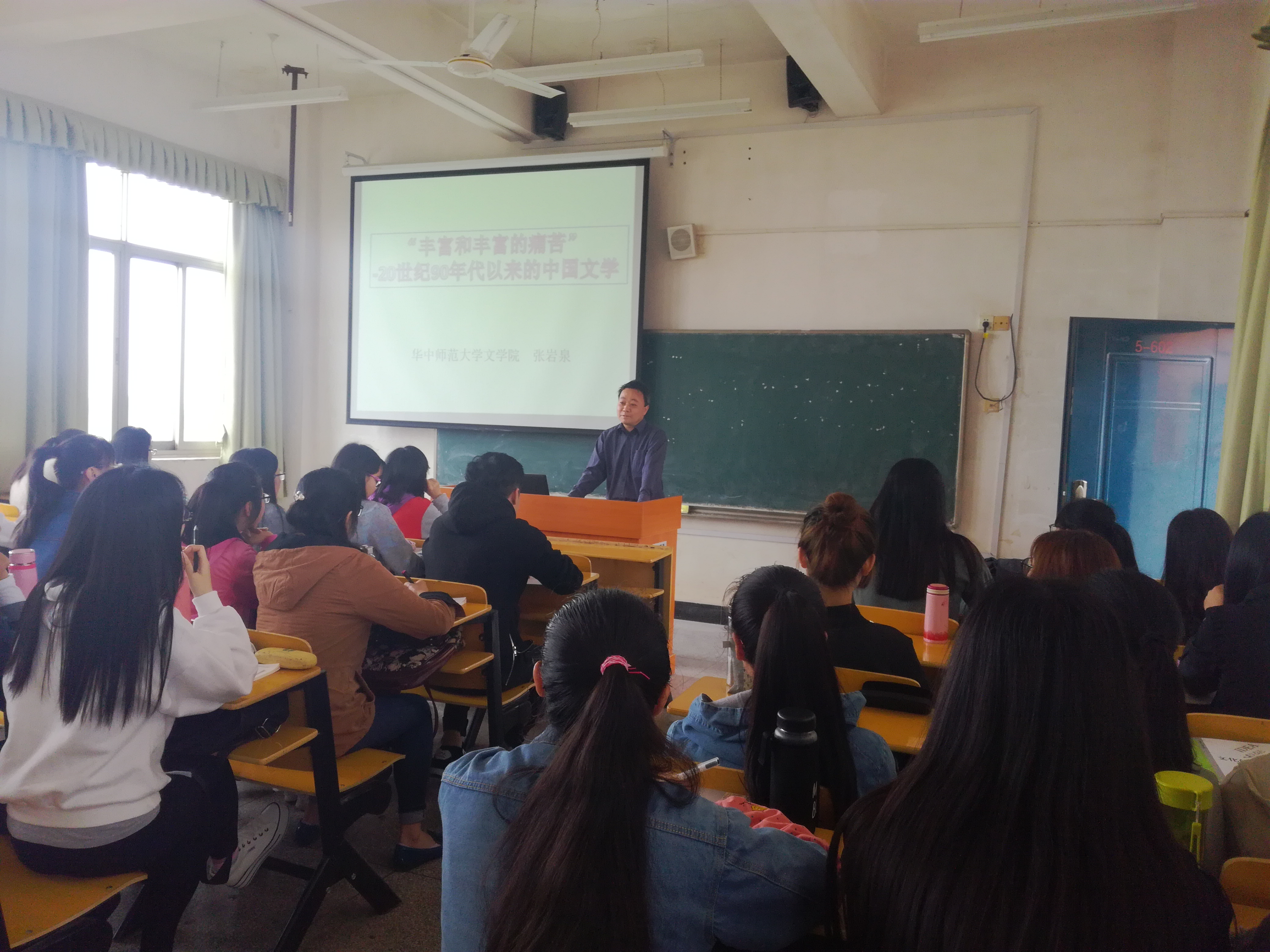 4月21日,华中师范大学文学院博导张岩泉教授在5栋602教室为我院师生开展了“丰富和丰富的痛苦——20世纪90年代以来的中国文学”讲座。我院副院长邱斌以及龚奎林等老师参加了讲座。