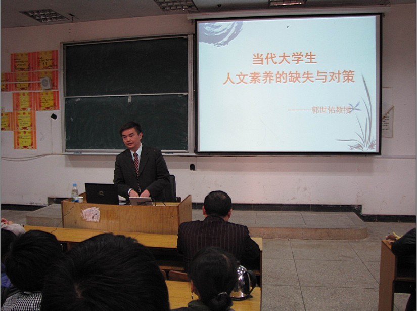 第三届“同济学术周”开幕后,12月6日下午,同济大学博士生导师郭世佑教授在人文学院作了一场以“当代大学生人文素养的缺失与对策”为题的学术讲座,全校近200名师生到场聆听。