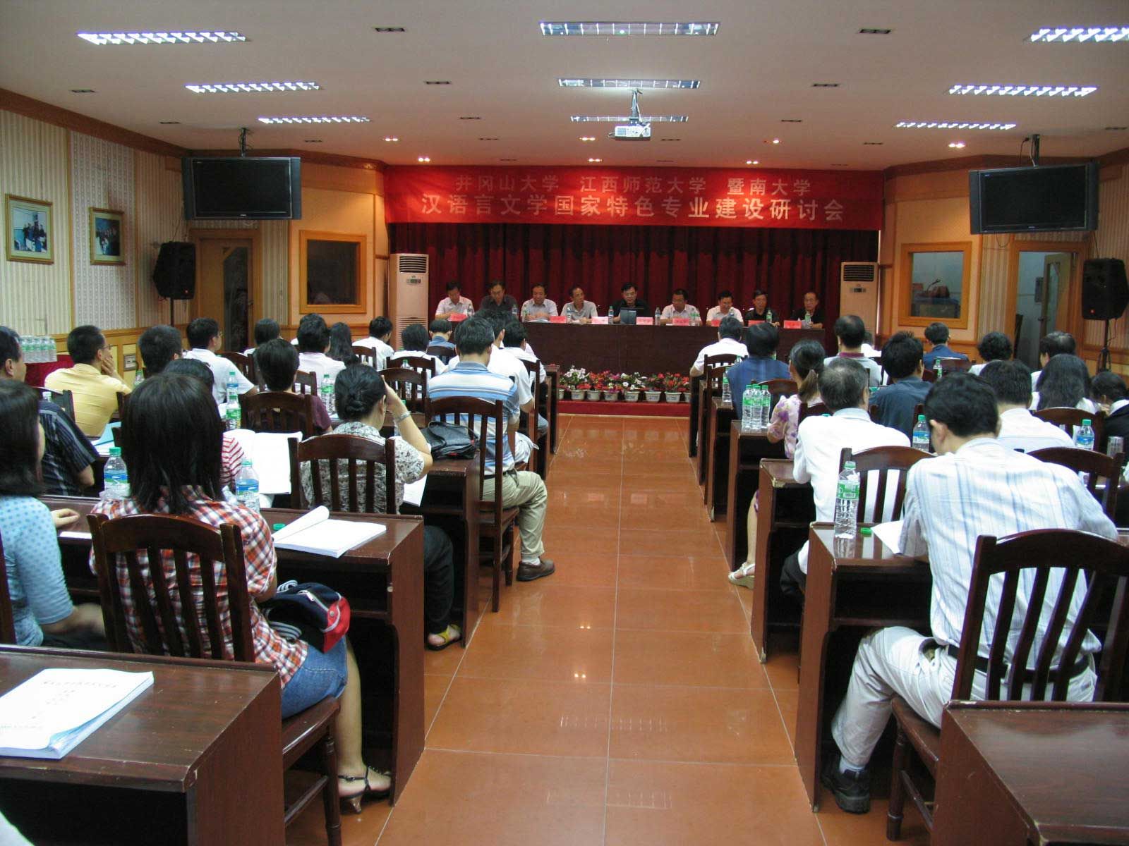 由我院主办的“汉语言文学国家特色专业研讨会”于2009年6月30日在我校召开。来自江西师范大学文学院、暨南大学中文系、华南师范大学中文系等高校的院系领导、专家学者共七十余人参加了会议。我校党委委员、副校长桂国庆教授,教务处处长黄俭根教授出席会议。桂国庆副校长代表学校对大会在我校召开表示热烈祝贺。