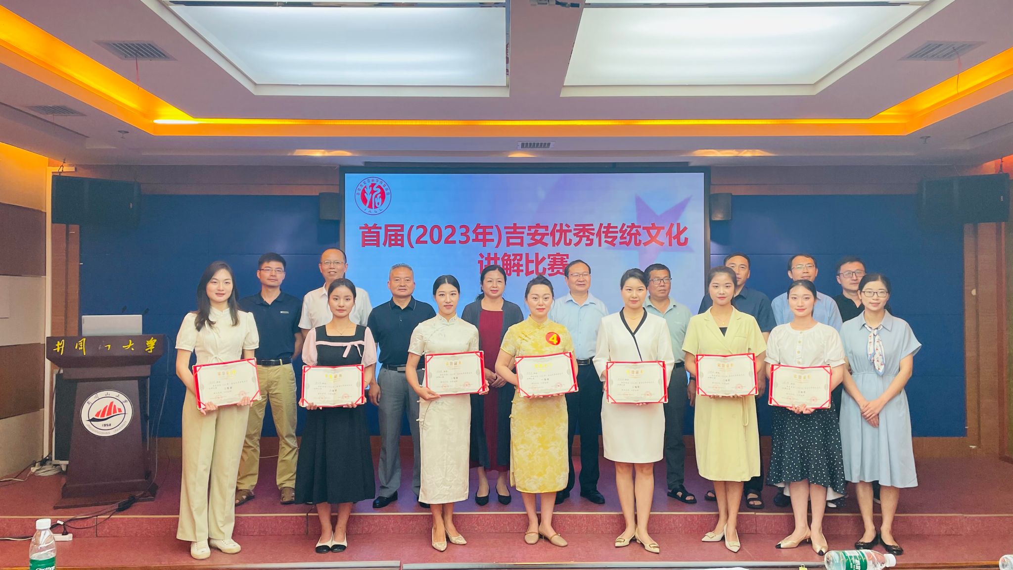 为充分展示中华优秀传统文化的文明内涵和独特魅力,6月9日,庐陵文化研究中心与吉安市社联共同举办首届(2023年)吉安优秀传统文化讲解比赛。校党委常委、副校长黄俭根出席并为获奖选手颁奖,市社联党组书记谢莉、主席周忠平及班子成员出席并颁奖,庐陵文化研究中心丁功谊教授等专家担任评委。