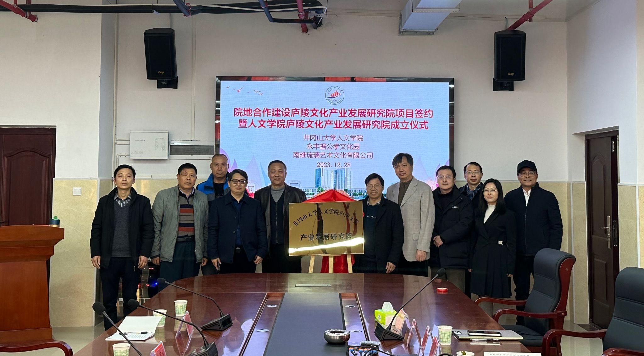12月28日,我院与永丰据公孝文化园、南雄琉璃艺术文化有限公司共同举行合作建设庐陵文化产业发展研究院项目签约暨人文学院庐陵文化发展研究院成立仪式。出席本次活动的嘉宾有南雄琉璃艺术文化有限公司董事长麦国权、永丰县文化馆馆长曾进、永丰据公孝文化园联络人曾凤文以及法人代表曾长根等。