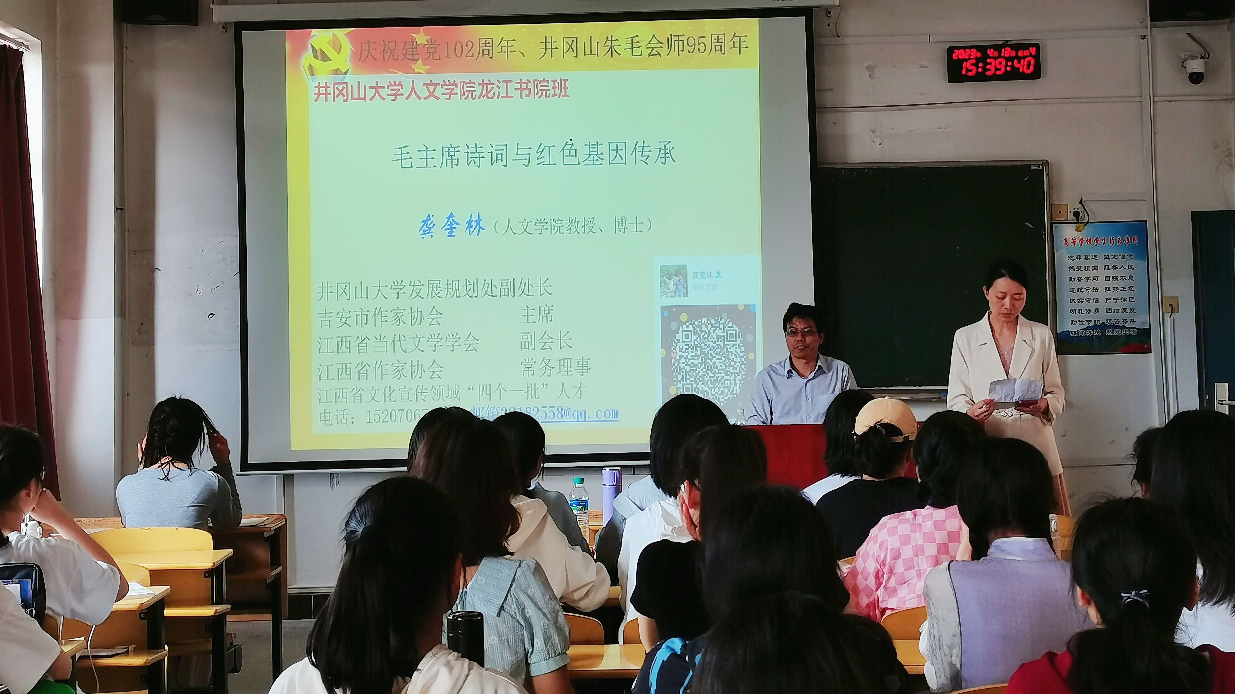 4月13日,龙江书院班邀请江西省当代文学学会副会长、江西省作家协会常务理事、江西省文化宣传领城“四个一批”人才、吉安市作家协会主席、校发展规划处副处长龚奎林教授开展了“毛主席诗词与大学生成长”专题学习活动,教育引导龙江书院班学员争做红色文化的传播者宣传者。