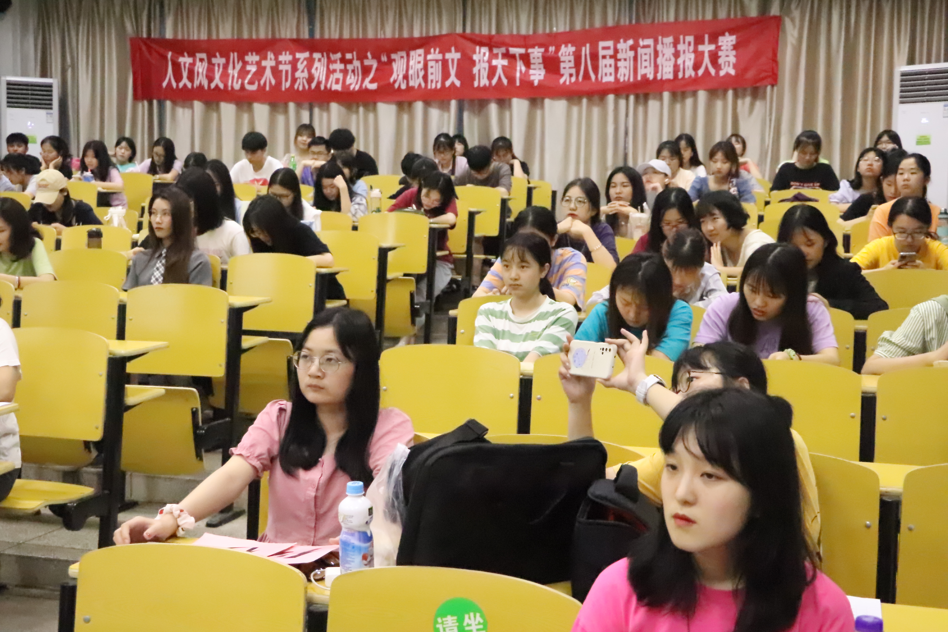 5月16日晚18时30分,为培养新闻系学生对新闻的关注度,增加对新闻的了解,展示我校新闻系学生的青春风采,人文学院团委学生会新闻部于五栋104教室开展了第八届“观眼前闻,报天下事”新闻播报大赛。此次大赛由20编导1班的刘帅同学主持,参与比赛的评委老师有梁长荣老师、杨虹老师、刘珊老师。
