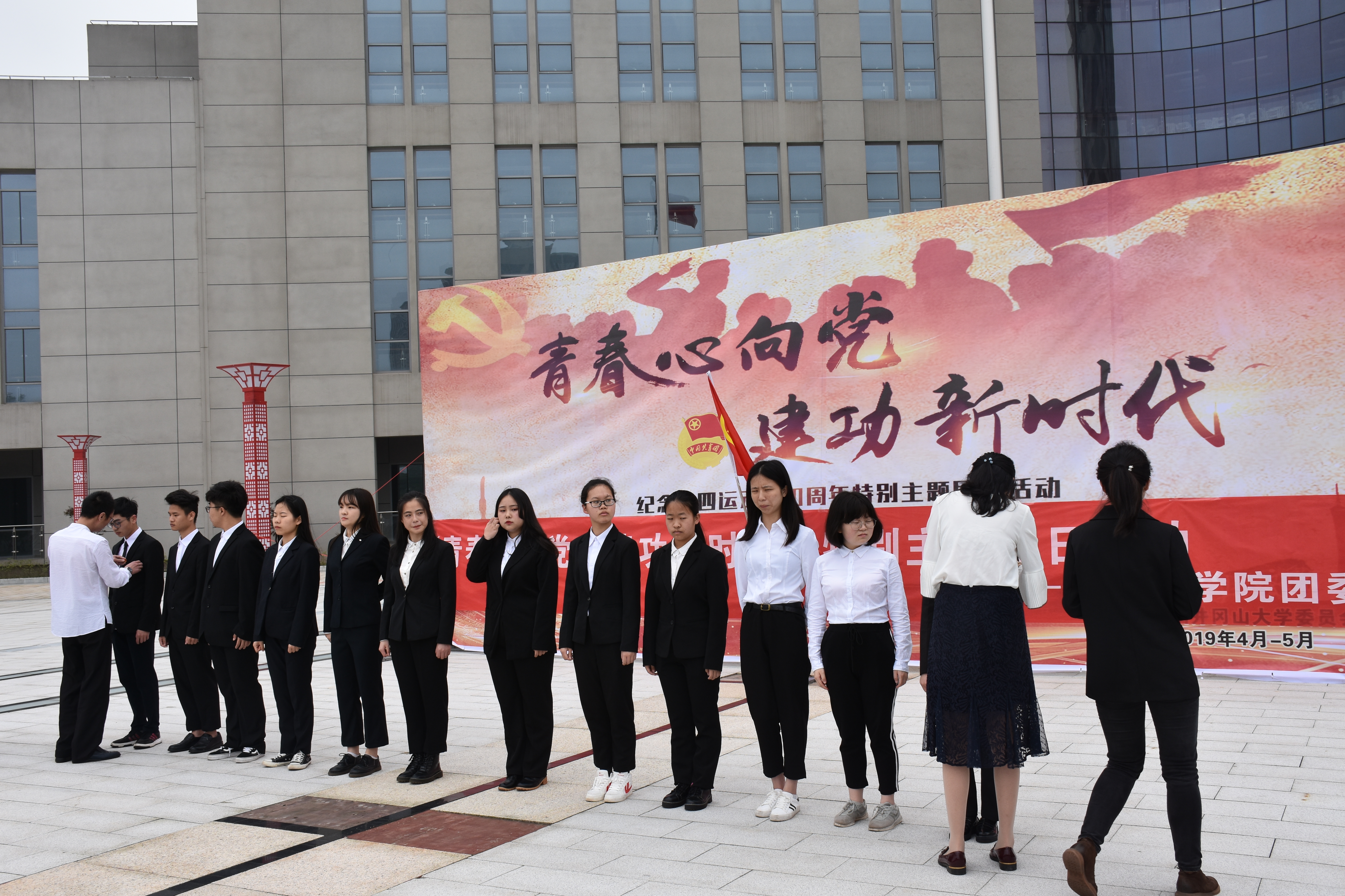 4月27日上午10时,我院“青春心向党,建功新时代”主题团日活动在映山红文化广场举行,本次活动由我院团委副书记戴梦雅老师主持,16、17、18级全体团员共同参与。
