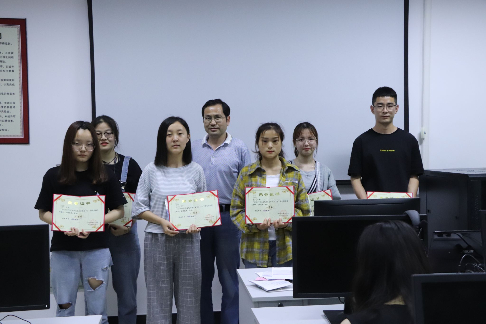 评委老师点评后,主持人宣布了本次微电影大赛的获奖作品名单。其中,获得本次比赛一等奖作品是《你好,谢谢》,二等奖作品为《从前》、《等一个人》,三等奖作品为《寻·遇》、《游青原山记》、《寻觅·ME》。