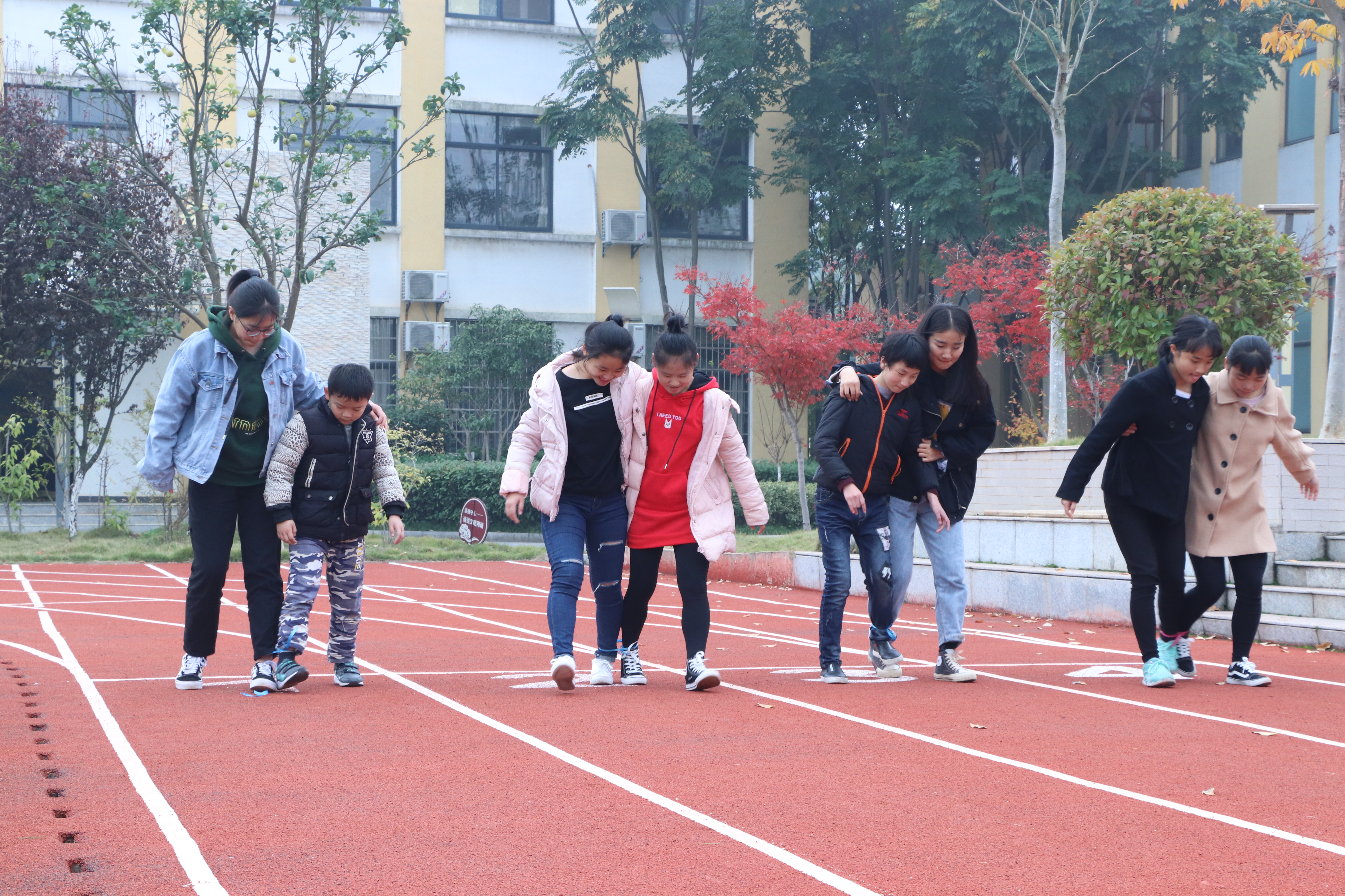 为了更快地融入孩子们,志愿者们事先准备了一些小游戏。在两人三足游戏中,我院志愿者和特殊学校的孩子们分为两组进行比赛。孩子们五人站成一排将脚绑在一起,大家齐心协力、步伐一致,率先到达了终点。