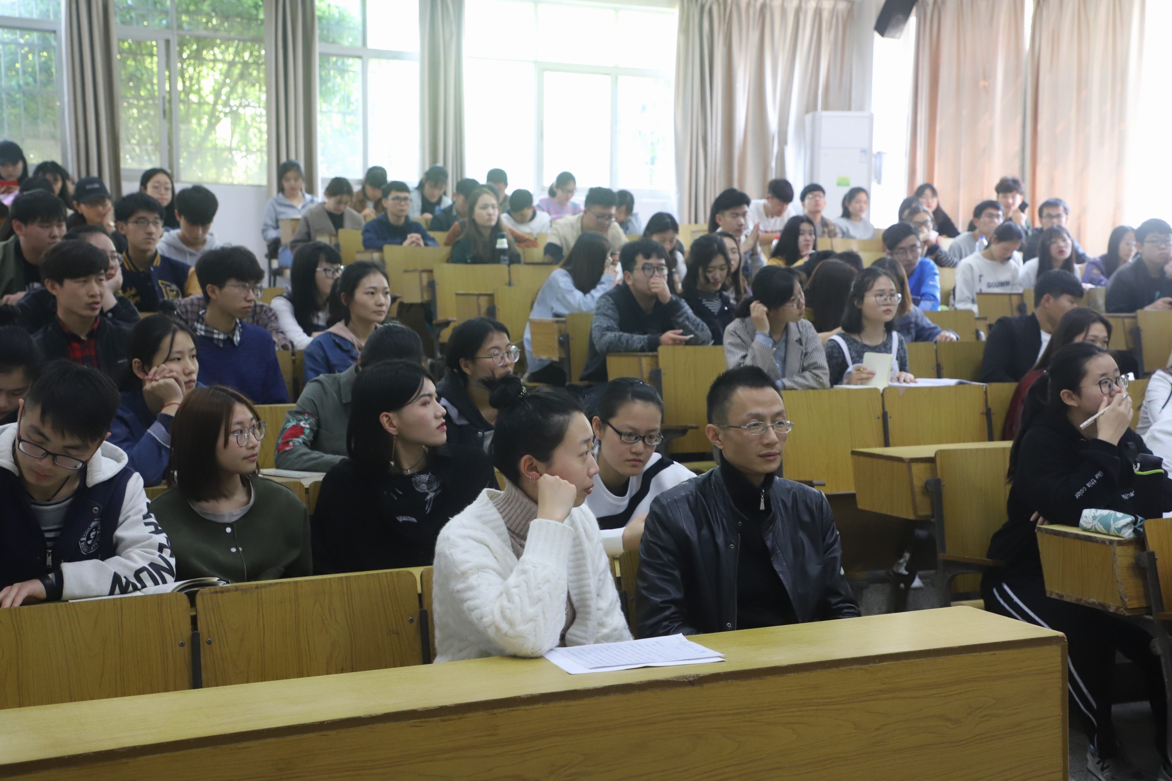 随后,戴老师的讲话侧重于新老成员的交接工作。她希望全体院干团结一致,配合完成好新学期的工作,并说道:“创新是我院活动的特色,需将创新融入各项活动,进一步完善团委学生会的各项规章制度。”