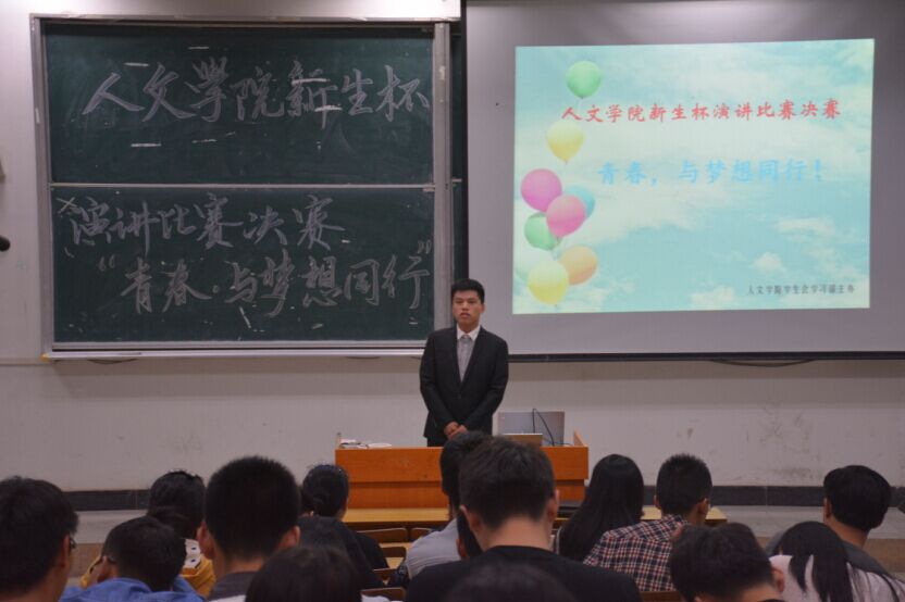 10月17日晚7时,我院“青春,与梦想同行”新生杯演讲比赛决赛在五栋204教室隆重举行。通过层层选拔,共有16位选手晋级决赛。本次比赛由我院黄帅老师、吴翔明老师以及优秀主持人张玲同学担任评委。