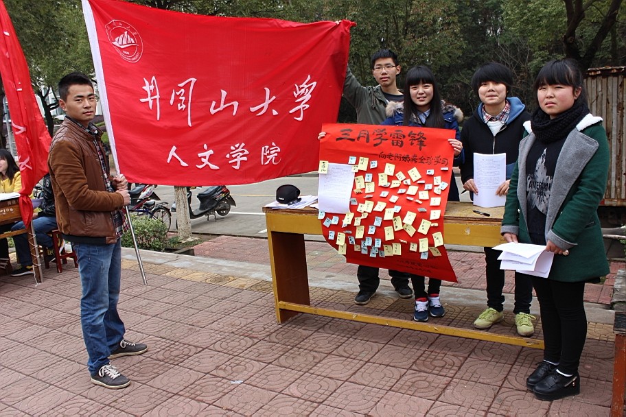 此次活动以“向老阿姨——龚全珍同志学习”为主题,通过发放传单及向同学们讲述龚全珍的感人事例,号召同学们学习她无私奉献的高尚品德和崇高精神。活动现场不少同学采用“写便利贴”的形式,写下对自己对雷锋行动的支持及感想。此次活动让同学们感受到了身边的雷锋精神,使之在今后的工作和学习中更好的行动践行。