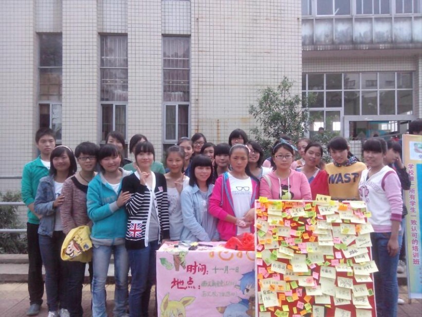 中午12点在新食堂门口,二十多名爱心社志愿者在此对前往食堂吃饭的同学以及老师通过拥抱的方式发出真挚的问候。被拥抱者还在旁边签名板上签名,他们在便利贴上写下了对他人的美好祝愿。刚开始时志愿者们有点胆怯和害羞,在志愿者们耐心的解释下,越来越多的同学以及老师加入到活动中。爱心社社长熊文佳表示活动基本达到了预期效果,并表示下一步将会把活动范围扩展到整个学校。