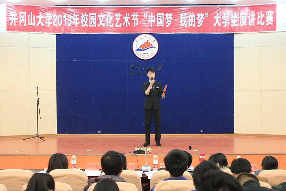 为了深入学习贯彻落实党的十八大精神引导广大青年大学生对“中国梦”的理解,充分展现井大学子朝气蓬勃与奋发向上的精神风貌,井冈山大学2013年校园文化艺术节之“中国梦 我的梦”大学生演讲比赛于12月14日晚6:30在10栋学术报告厅精彩举行。我院11广电班熊伟健、13历史班张玲代表人文学院参赛,熊伟健获比赛二等奖。
