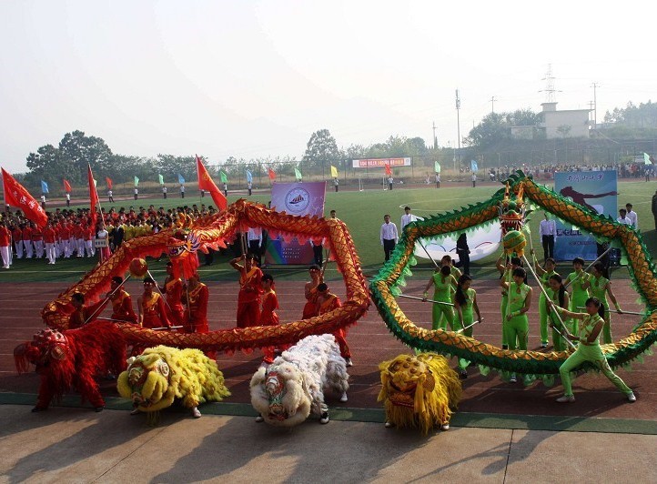 井冈山大学庐陵文化研究中心副主任丁功谊教授介绍到:舞龙是吉安非物质文化遗产的重要内容,著名的有吉安县的东园龙、振远龙、三节龙、板凳龙,遂川的五龙下海,吉水的长龙等省级的非物质文化遗产。本次校运会舞龙,摆出“中国龙”字样的高难度动作,体现了庐陵舞龙中雄浑阔大,刚健灵动的特点。看台上一名观众兴奋地说:“舞龙表演精彩,节奏迅疾,动作勇猛,行云流水,令人目不暇接。”