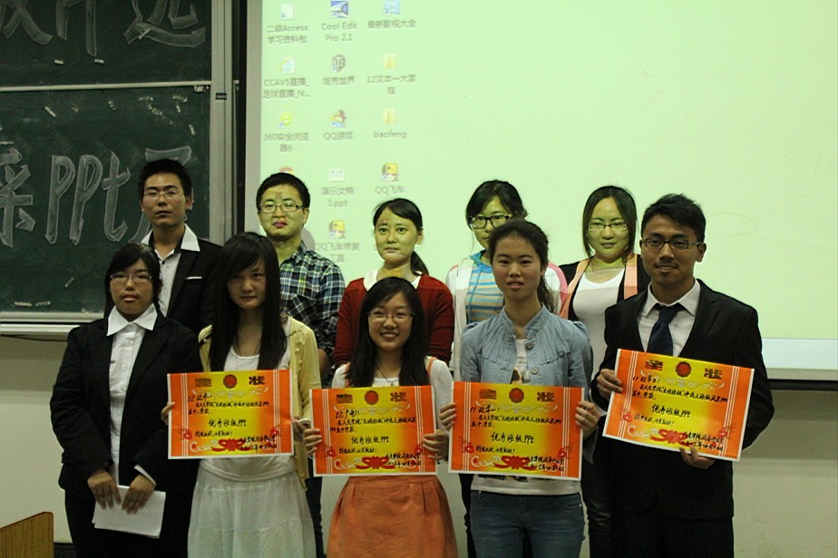 最终,12汉本1班、11汉本1班、12广电、11汉本3四个班获得优秀“PPT展示班级”(应琴)
