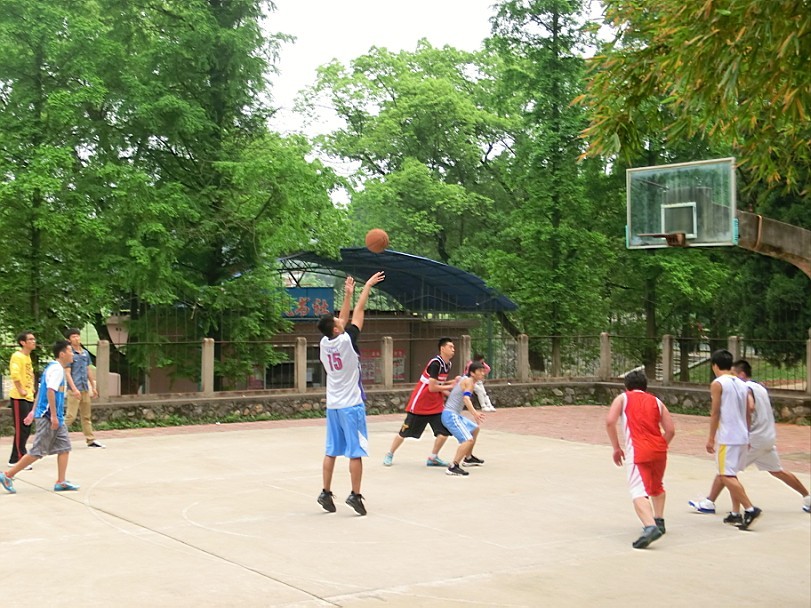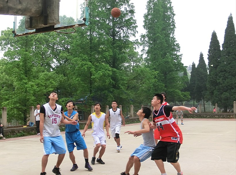 随着哨声一响,篮球飞扬,两队人马跑跳揽抢,互不相让,激烈的冠军争夺赛就此拉开了序幕。第一节,汉本编导联队率先抢得进攻球权,只见持球队员转体、运球、起跳、投篮……伴随着满场的惊呼,篮球在空中划过了一道完美的弧线却稳稳的砸在了球框上,真可惜没能命中!10联队立刻缓过神来,合上了咧开的嘴巴,健步飞起抢下篮板。随后在人群中左突右冲起跳投篮,大家一愣,继之哗然,球进了!接下来的“厮杀”更是激烈。汉本编导联队频频发起进攻,可是几番投篮却被10联队抢断,随即10联队连连攻破汉本编导联队的后防,终以20:11的比分结束了第一节的比赛。
