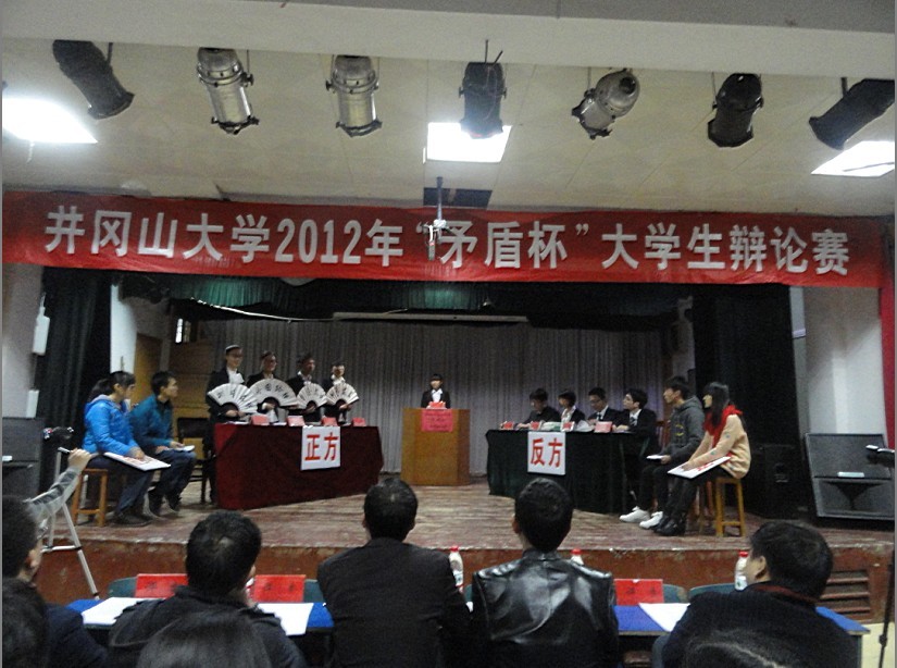 11月25日晚7点,由我校团委学生会主办的“矛盾杯”辩论赛复赛在六栋演奏厅如期举行。出席比赛的评委有马克思主义学院教授刘志翔、学工处副处长张蔼云、生科院办公室主任郭志鹏、校团委副书记滕永琛及我院副教授吴翔明。全场座无虚席,愈两百名同学观赛。我院代表队西装折扇,妙语不断,大败强敌政法学院,顺利晋级四强。