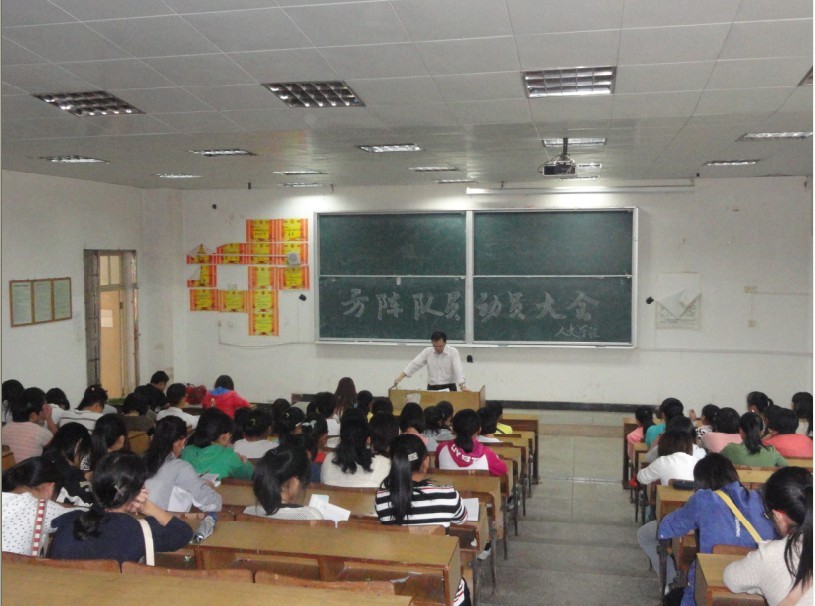 体操展风采 ,动员长精神!10日中午12:50分,我院广播体操队、方阵队动员大会于五栋104正式召开。党委书记欧阳杰出席会议并发表重要讲话,方阵队、体操队上百名成员参加了此次会议。会议由负责监督方阵队及体操队训练的维权部部长王珞琦主持。