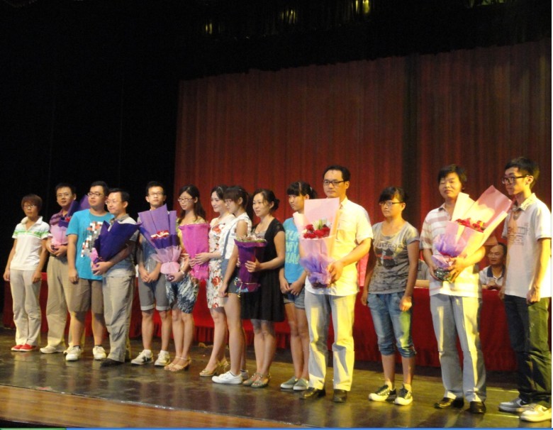 接着,优秀教师邱斌博士、老生和新生代表相继上台进行讲话,纷纷对新生的大学生活寄予了期望与祝福。之后,邓声国为大家介绍了各班班主任。新生代表借此机会在教师节前夕为给班主任献上花束,表达对老师们的美好祝愿。霎时间,台下掌声雷动。台上新生代表与老师们合影留念。