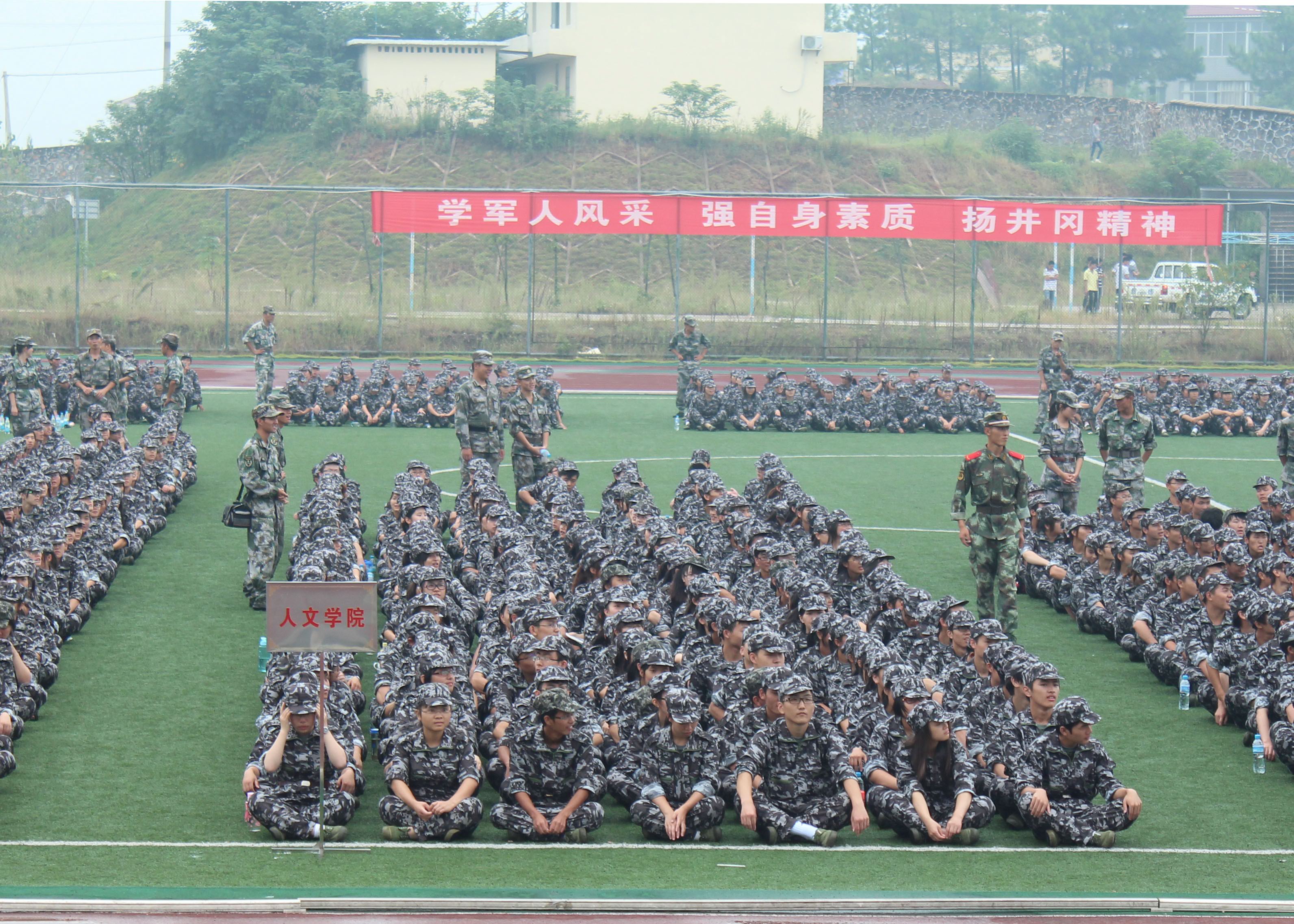 “青春似火超越自我群雄争霸人文必胜”响彻北区田径场。9月21号下午,井冈山大学2012级新生军训会操暨表彰大会在北区田径场如期举行,我院12级新生为期9天的军训落下帷幕。