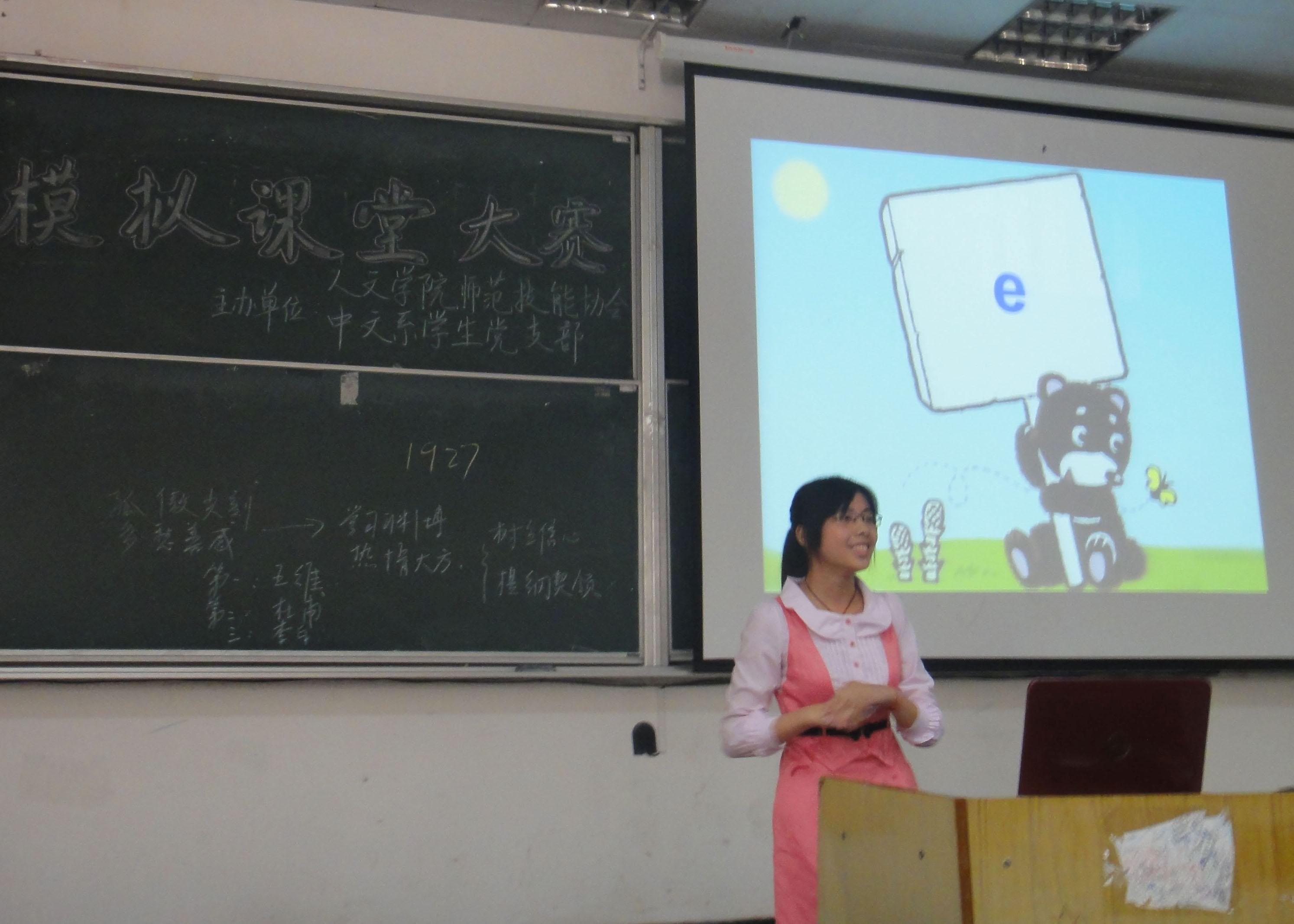 经过层层选拔,终于迎来了师范技能协会首届“园丁杯”模拟课堂大赛决赛。本次比赛于5月27日上午9:00在5栋104教室隆重举行。邱斌副院长以及刘晓然教授、黄桃红副教授出席大赛并担任评委。
