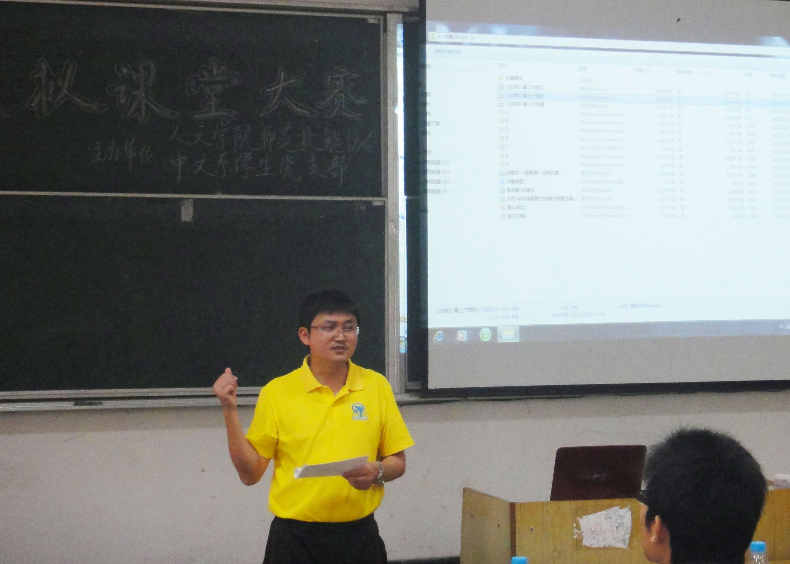 模拟课堂大赛在一号选手郑怡茜《两小儿辩日》的讲解中正式拉开了帷幕。各位决赛选手都展示了较好的专业技能,他们准备充分,表达流畅,并搭配多媒体课件,使讲课变得生动形象。整个比赛精彩纷呈,讲课技巧各异:方皖皖《致橡树》声情并茂,杨浩《藤野先生》慷慨激昂……大家的表现迎来台下阵阵掌声。