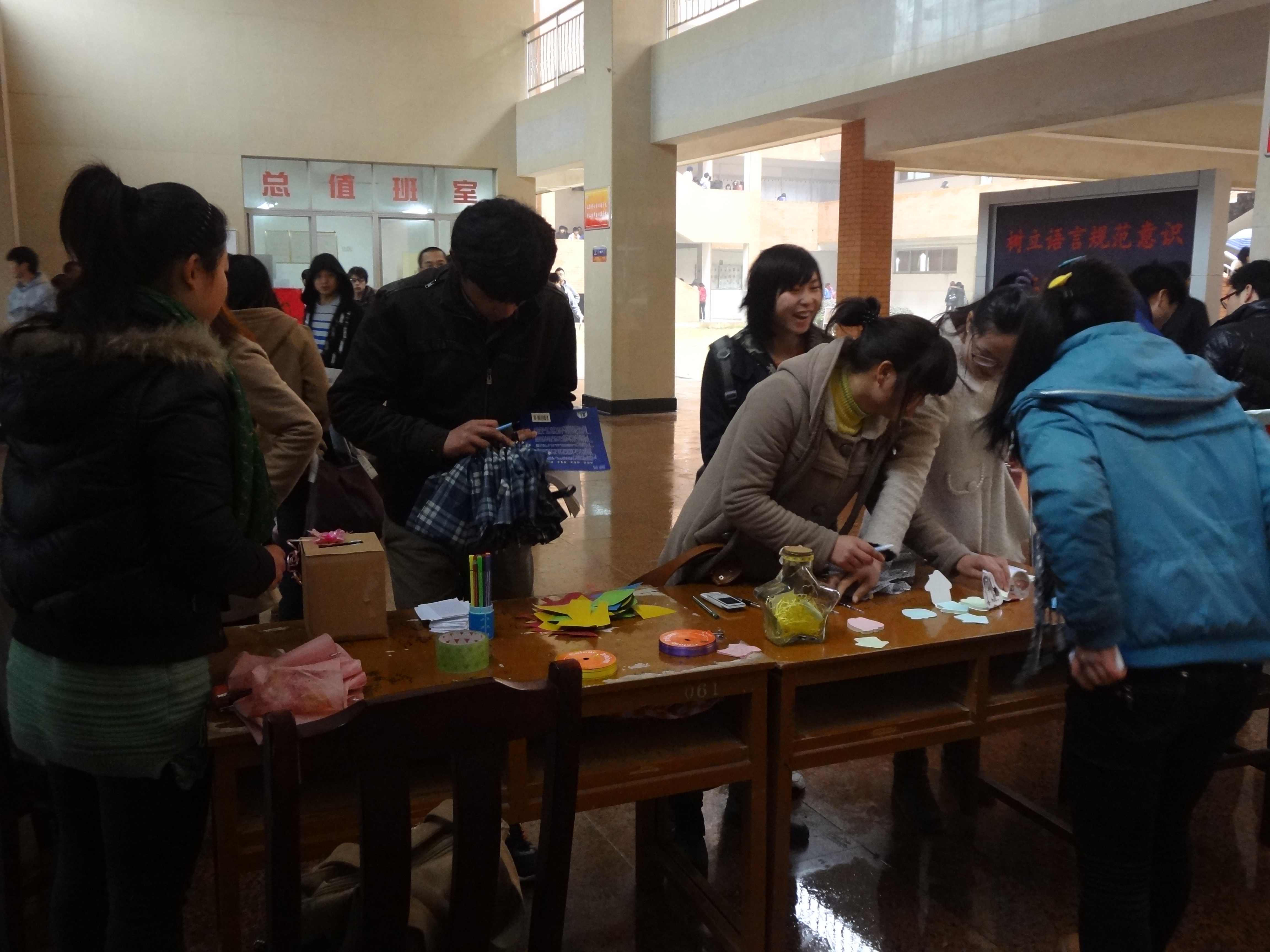 3月7号上午,我院女生部举办了女生节系列活动。活动在五栋大厅开展。