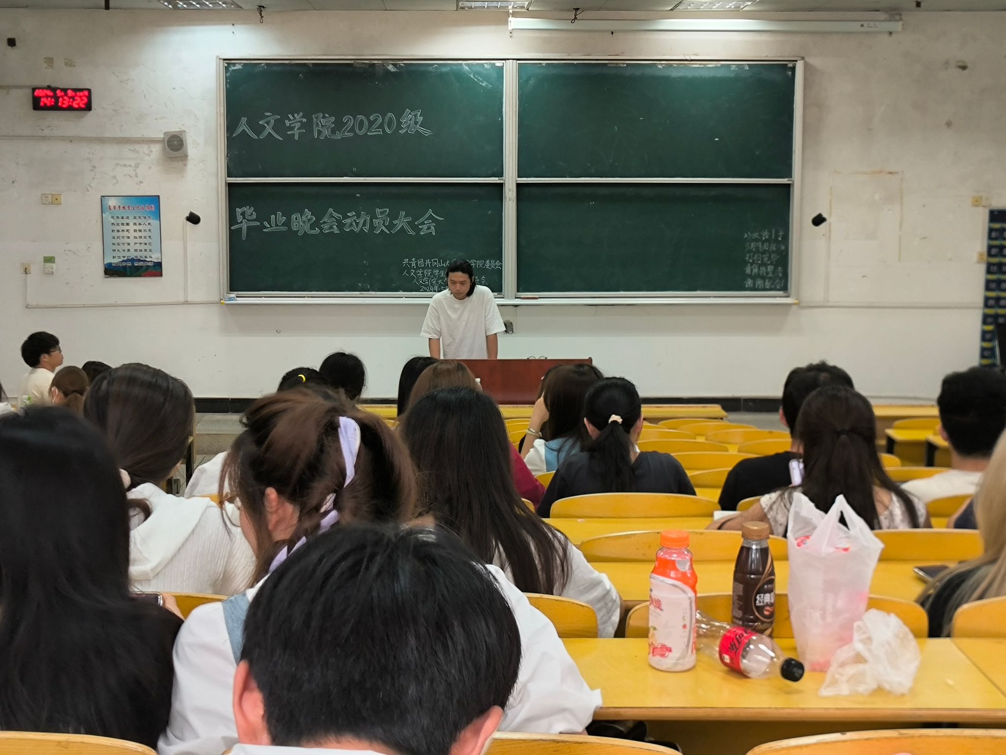 为了确保即将到来的毕业晚会能够顺利开展,人文学院于5月9日在5栋104举行了2020级毕业晚会筹备工作动员会。会议由文艺部负责人王博镭主持,团委学生会、大学生自律委员会全体成员参加。