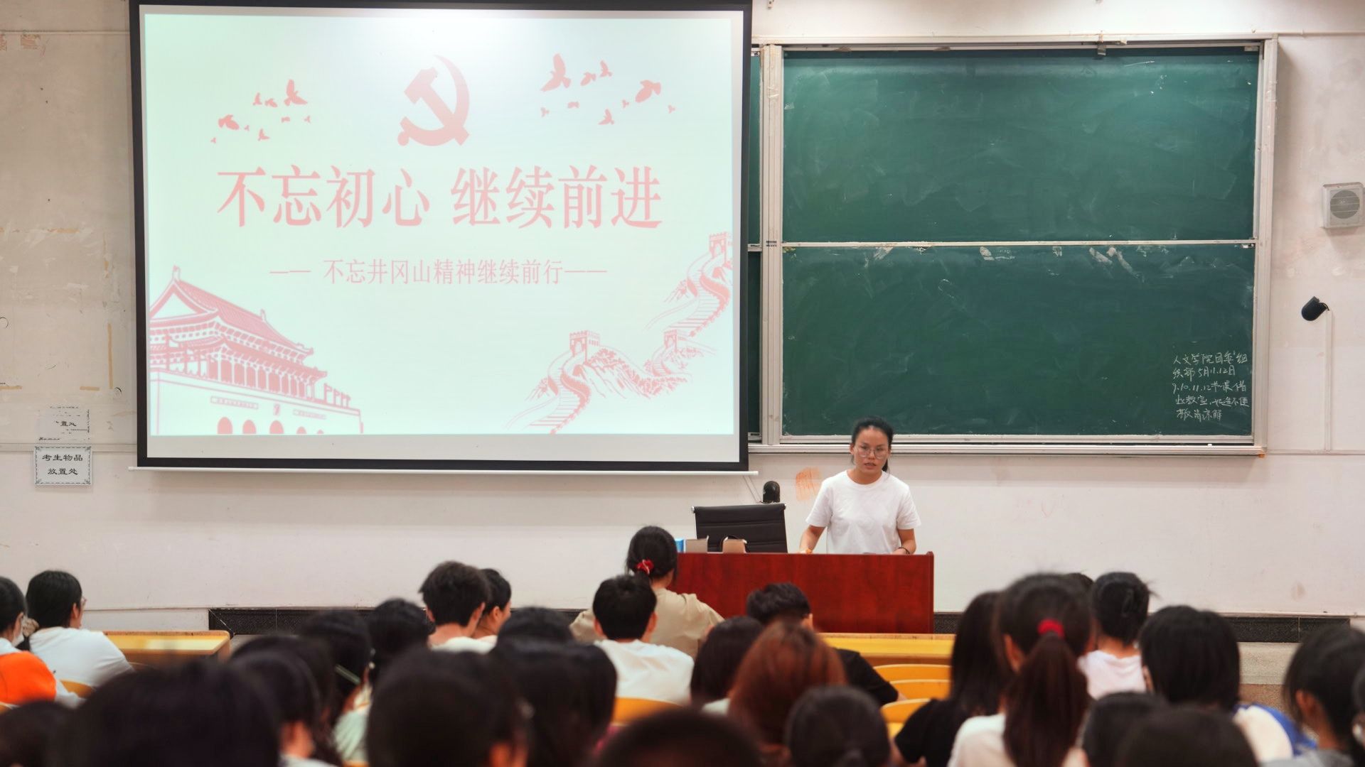 本次课程围绕井冈山精神展开,主题为“不忘初心,继续前进”。课程内容共分为“井冈山革命根据地的建立”“井冈山精神的科学内涵”“井冈山精神的现实意义”“让井冈山精神放射出新的时代光芒”等四个模块。陈玉萍的讲课生动形象,当讲到井冈山革命根据地的建立时,那段峥嵘岁月仿佛就从大家眼前掠过。除此之外,还为大家详细介绍了井冈山精神的科学内涵及其丰富的现实意义,丰富了大家的知识储备。