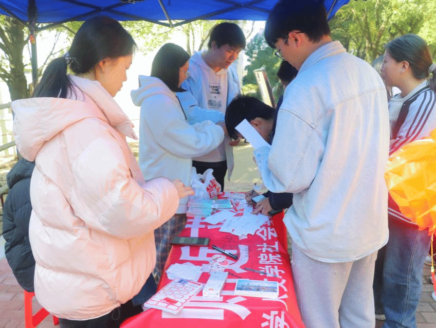 此次活动共设四个环节。首先,社实部工作人员向同学们详细介绍了艾滋病相关危害和预防措施、计生用品使用的必要性,并发放计生用品及宣传单,以此来唤醒同学们对艾滋病患者的关爱,坚决反对歧视行为。随后,现场进行了艾滋病防范知识有奖竞答游戏,现场气氛活跃。接着,工作人员引导参与活动的同学在签名墙留下自己的名字。最后,参与者撕下标签,将防艾红手结贴于签名墙上,进一步体会到了爱的传递,深刻感受到了“防艾不防爱”。