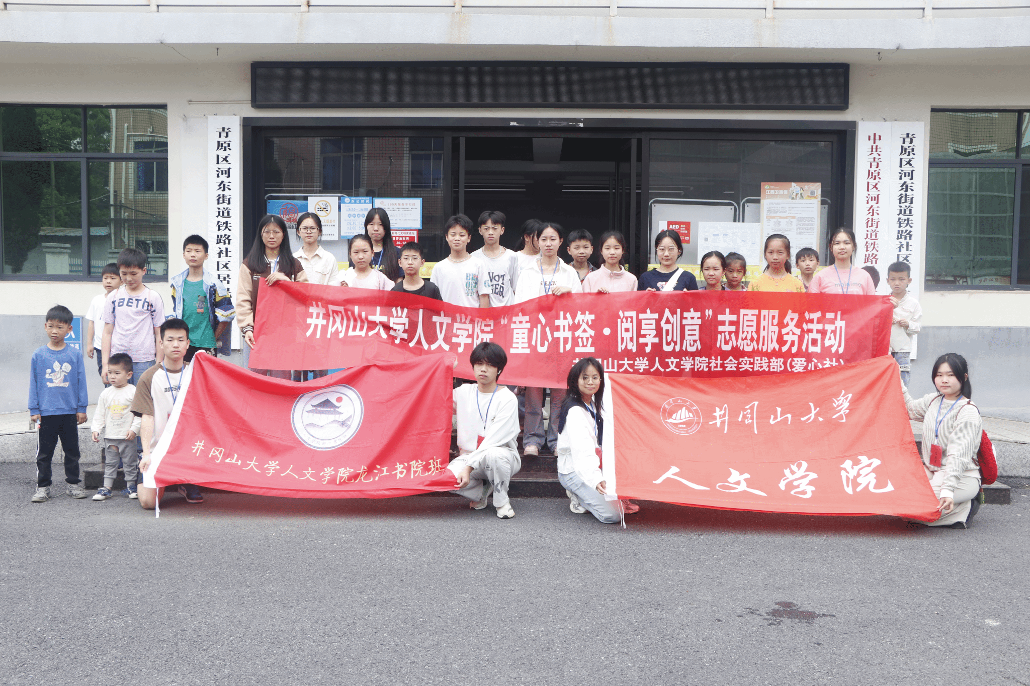 为点燃少年儿童的阅读热情,激发其创新思维与实践能力,4月20日,人文学院社会实践部(爱心社)携手龙江书院,在青原区铁路社区温情启幕“童心书签·阅享创意”主题志愿服务活动。