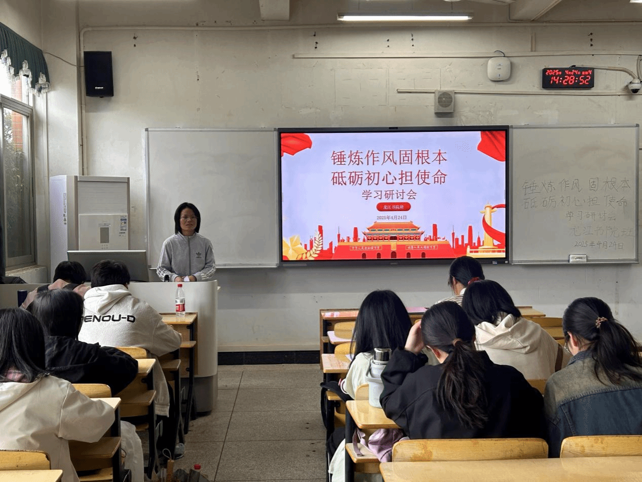 4月24日下午,我院龙江书院班在5-109教室举办了“锤炼作风固根本,砥砺初心担使命”主题学习研讨报告会,由班主任陈玉萍老师主持,全体学员共同研读《习近平关于加强党的作风建设论述摘编》。