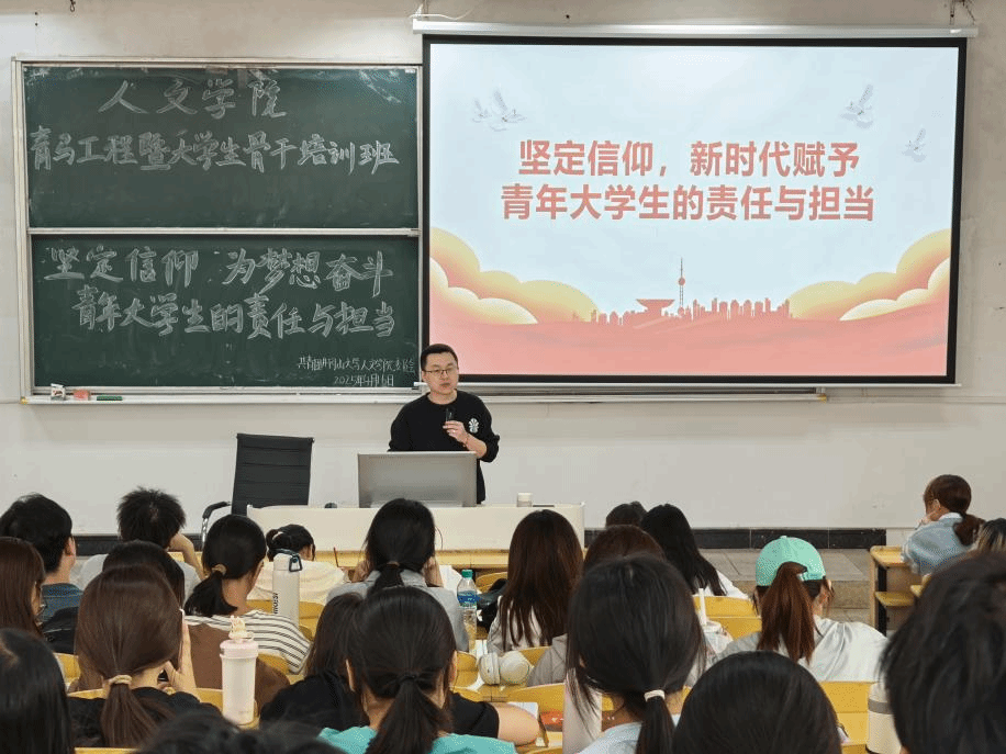 在开班仪式上,人文学院团委负责人郭仪介绍了青马工程的背景、意义与目标。她指出,本次培训意在助力同学们提升运用马克思主义观点和方法分析解决问题的能力,坚定跟党走中国特色社会主义道路的理想信念,成长为中国特色社会主义事业的合格建设者与可靠接班人。