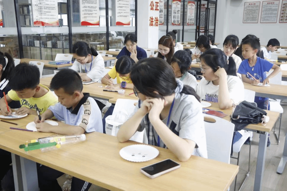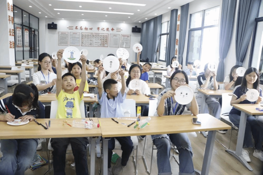 当色彩缤纷的民族服饰贴纸分发到孩子们手中后,充满创意的纸盘绘民族环节正式开启。孩子们化身小小艺术家,手持画笔,在一次性纸盘上专注勾勒民族典型服饰与头饰的轮廓。志愿者们穿梭其间,耐心陪伴,鼓励孩子们大胆发挥想象力。作品分组展示时,现场掌声、赞叹声此起彼伏,孩子们捧着自己的“杰作”,与志愿者们共同合影留念,定格下这充满欢乐与收获的珍贵瞬间。