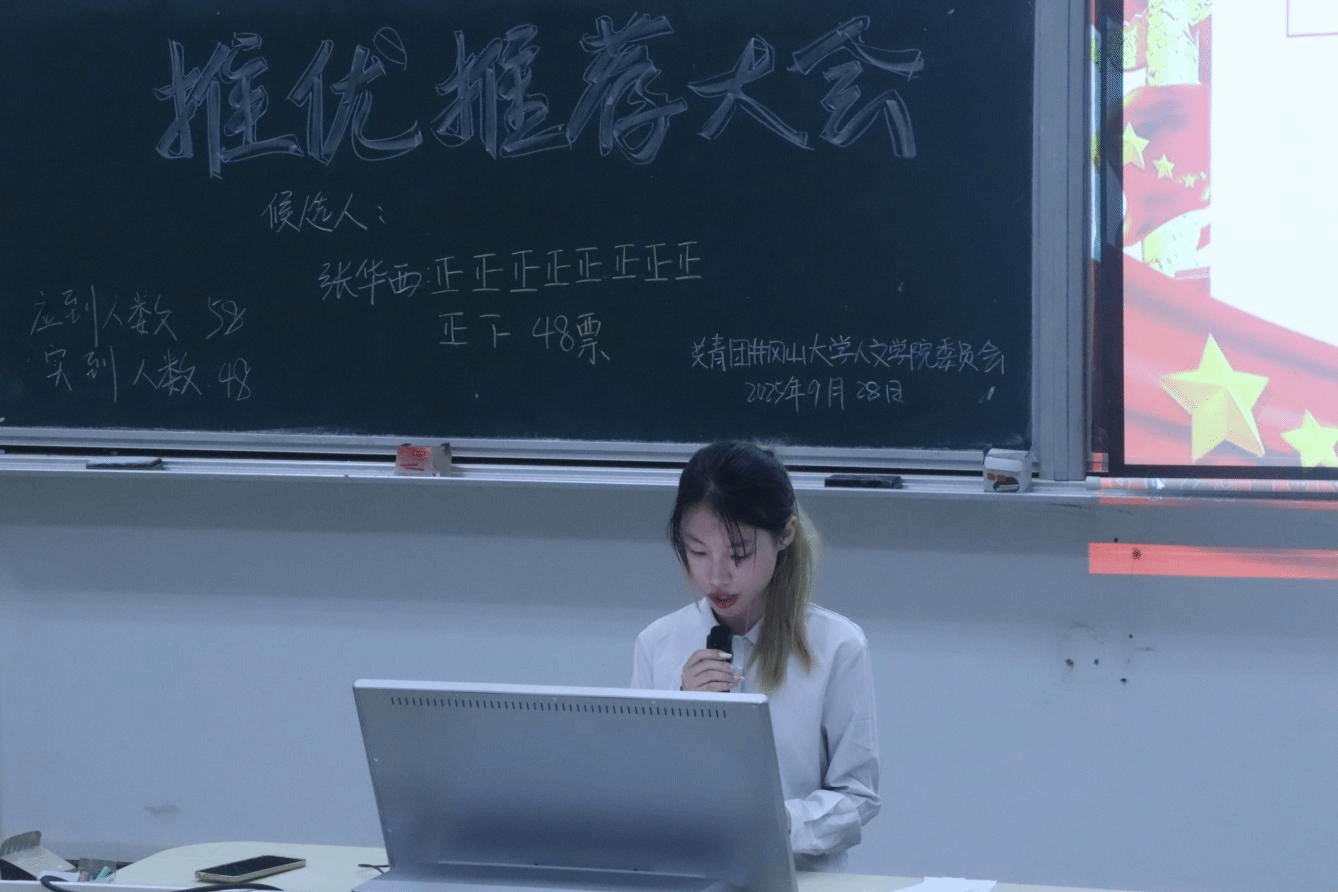 为加强青年思想引领,9月28日晚,人文学院团委学生会团支部于5栋204举行推优推荐大会,此次大会由组织部姚乐薇主持。