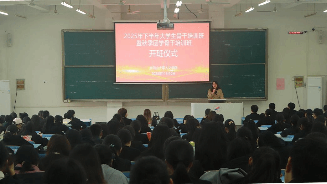 为强化大学生骨干的政治素养与思想引领,传承红色奋斗精神,人文学院2025年大学生骨干培训班于11月10日至11月20日在十栋教学楼c209教室开展。人文学院党委书记肖晓、院长龚奎林、党委副书记张闻、团委负责人郭仪出席活动为学生授课。