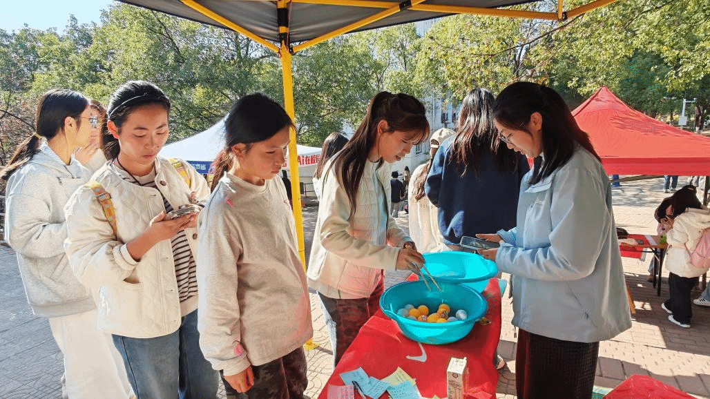 此次活动以“趣味夹乒乓球”活动为主线展开,志愿者们将游戏道具以及精美奖品摆在摊位前,一一向感兴趣的同学介绍游戏规则。参与者需要在规定时间内将六个乒乓球全部夹入盆中,成功者便可获得精美小礼品一份。志愿者们一边引导同学们进行游戏,一边向同学们普及防艾知识与防护要点。现场同学踊跃参与,还在便利贴上写下暖心话语,鼓励艾滋病患者。