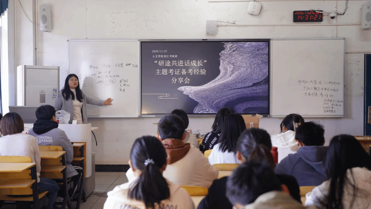 11月27日,人文学院龙江书院班“研途共进话成长”考证经验分享会在五栋108教室举行。