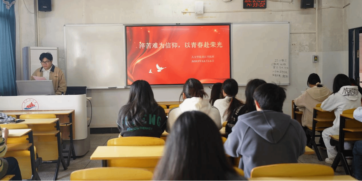 12月11日,龙江书院班于五栋110教室举行“淬苦难为信仰,以青春赴荣光”主题读书报告会。