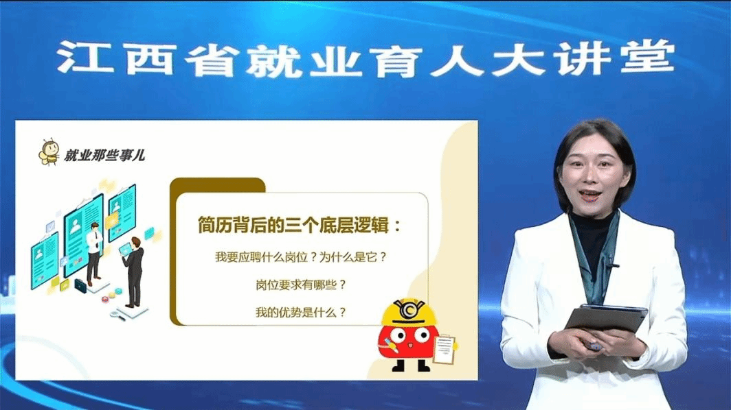 为切实助力学子提升就业实战技能、明晰职业发展路径,进一步增强毕业生就业核心竞争力,12月4日,由江西省教育厅主办、江西省教育评估监测研究院协办的“江西省就业育人大讲堂”第五期直播讲座如期开讲,同学们通过抖音扫码便捷参与线上观看,沉浸式汲取求职干货。本期讲堂以“让你的简历会‘说话’”为核心主题,特邀教育部“宏志助航计划”讲师、江西理工大学招生就业处副处长刘慧担任主讲嘉宾。